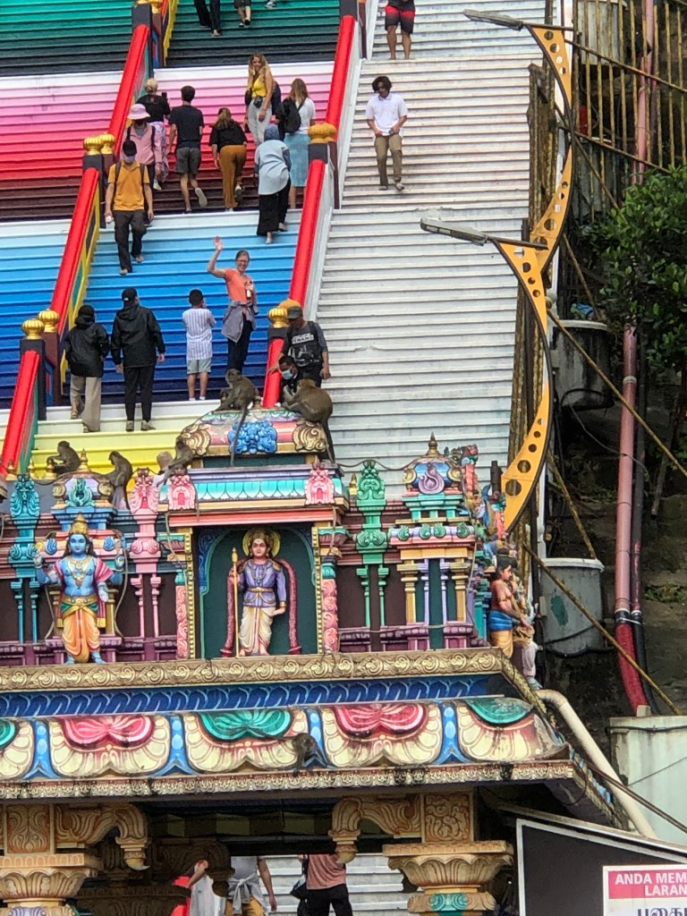 The Batu Caves are an important site for Hindus outside of India. There are 283 steps leading up to the main cave, and the base has an enormous gold statue. With the flocks of pigeons, it’s a bit chaotic.