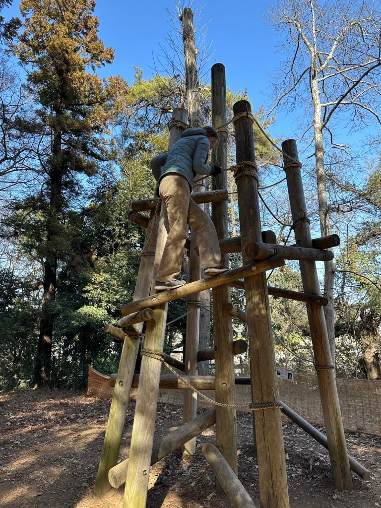 The next stop was the Shimizu Field Athletics Park. Anita learned about this park when researching adventure playgrounds for the one she designed for Hamsterly Beach at Elk Lake. There are four courses, each with its own challenges. This picture is from the green course; the blue one has more water.