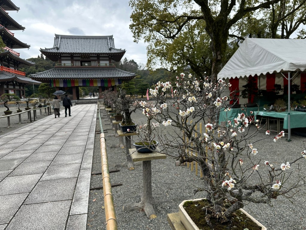 When we were there, bonsai fruit trees lined the avenue. There was a tent to the side with various bonsai plants for sale.