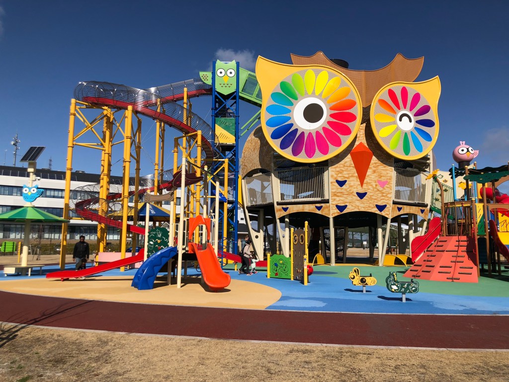 On the drive from Iwakuni, where we got off the bullet train, to Suooshima, the island where our friends live, we spotted the recently built Atagoyama Future Park, with its brightly coloured climbing structures.