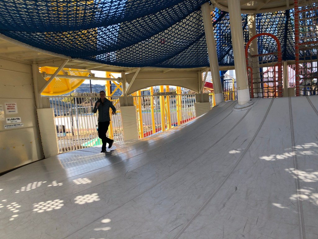 On every trip, there’s always something that I look forward to more than anything else. For the Japan leg of this trip, it was roller slides in Japanese playgrounds. A roller slide does not have a continuous metal or plastic sliding surface. It has rollers, like you find on a conveyor belt.