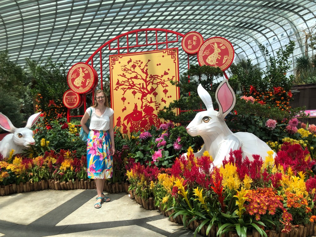It’s Feb. 1st today, and Chinese New Year decorations are starting to disappear. This one in the Gardens by the Bay Flower House stayed up during our visit, though others were coming down.