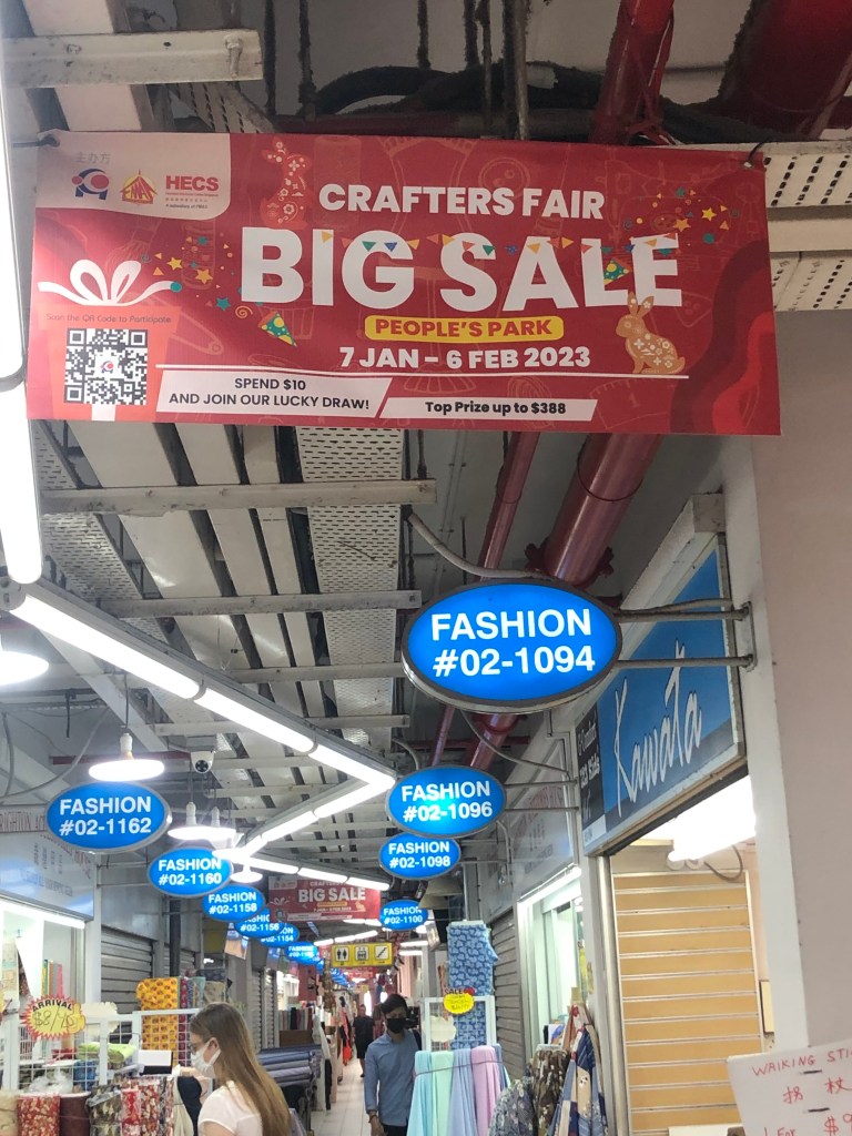 We had a bit of a struggle finding the right part of People’s Park. The Golden Dragon was in the part that faced Eu Tong Sen Street, the road that we usually took. I think the fabric stalls were on the building that faced New Cross Street. Whichever building the fabric stalls were in, they were on the third floor. It was worthwhile to keep looking.