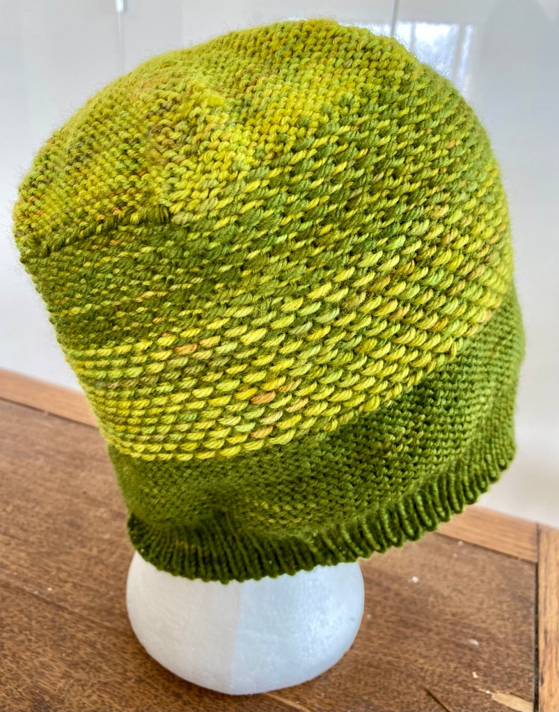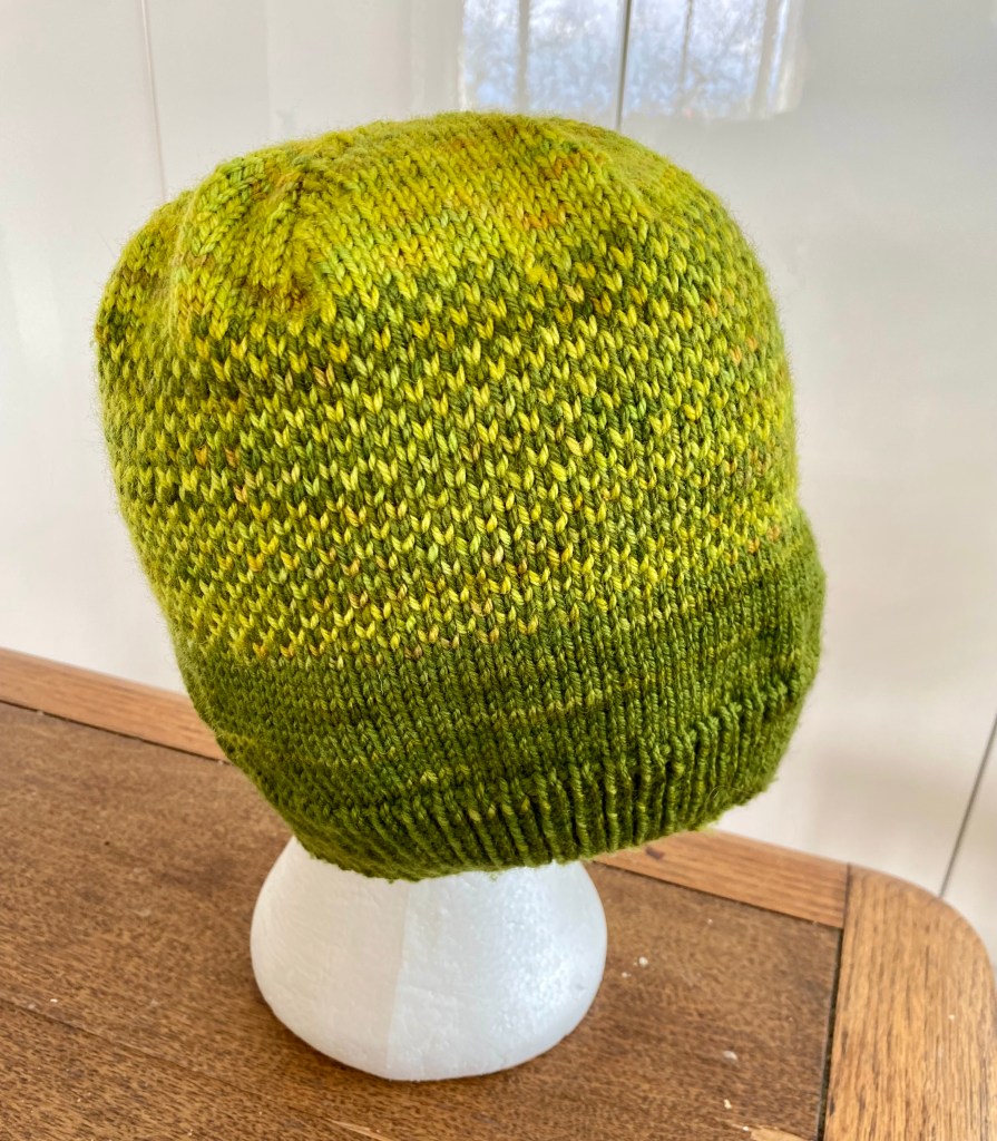Sometimes, as with this Brighton Hat by Megan Nodecker knit in two shades of Dream in Colour green, colour dominance barely shows up. I wondered why I went through all that trouble.
