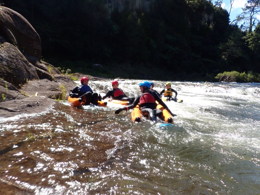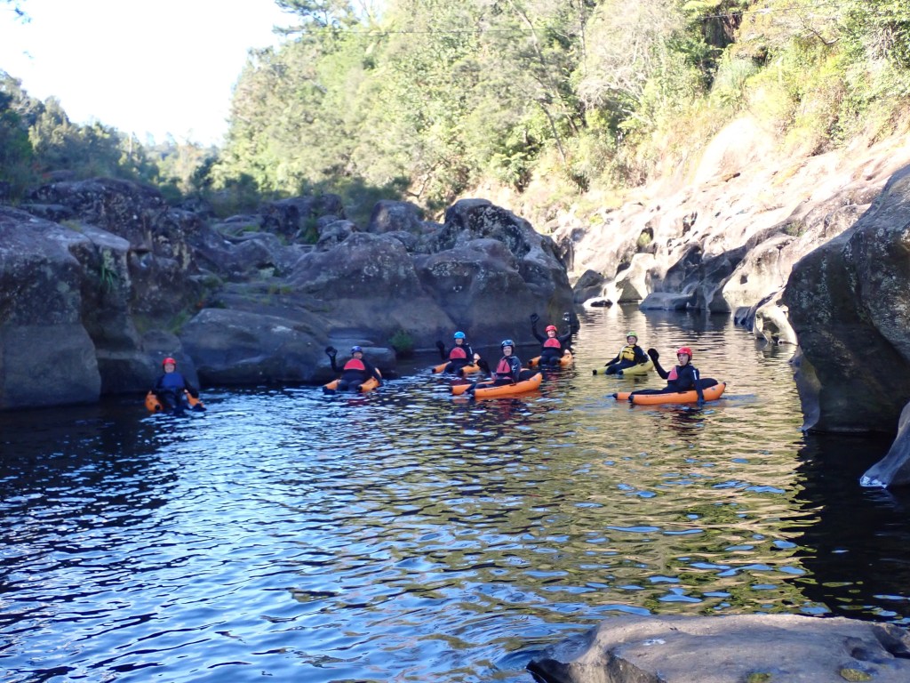 They supplied wetsuits, flippers, webbed gloves and helmets. We needed to walk some of the way upstream, and paddle some of the way. The paddling would help get us used to the propulsion technique, and would be easier than walking with flippers and our mini-rafts. The wetsuits would keep us warm.