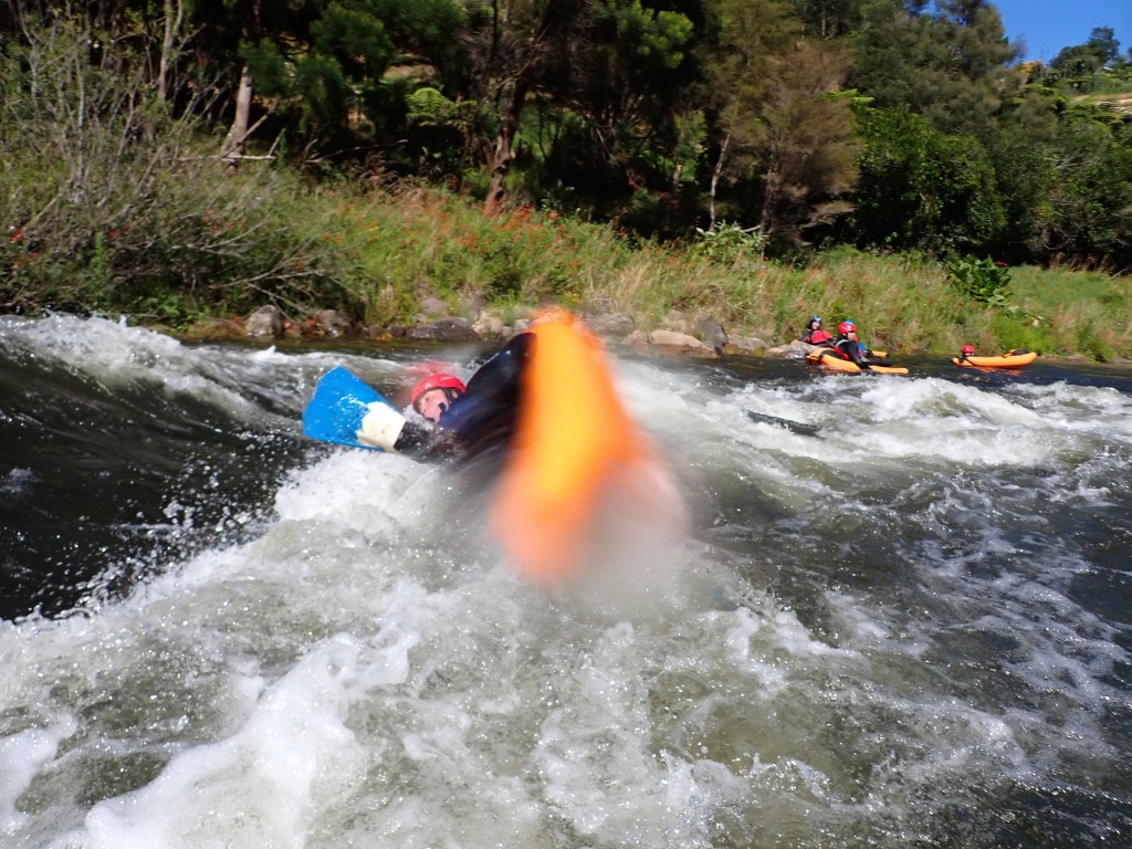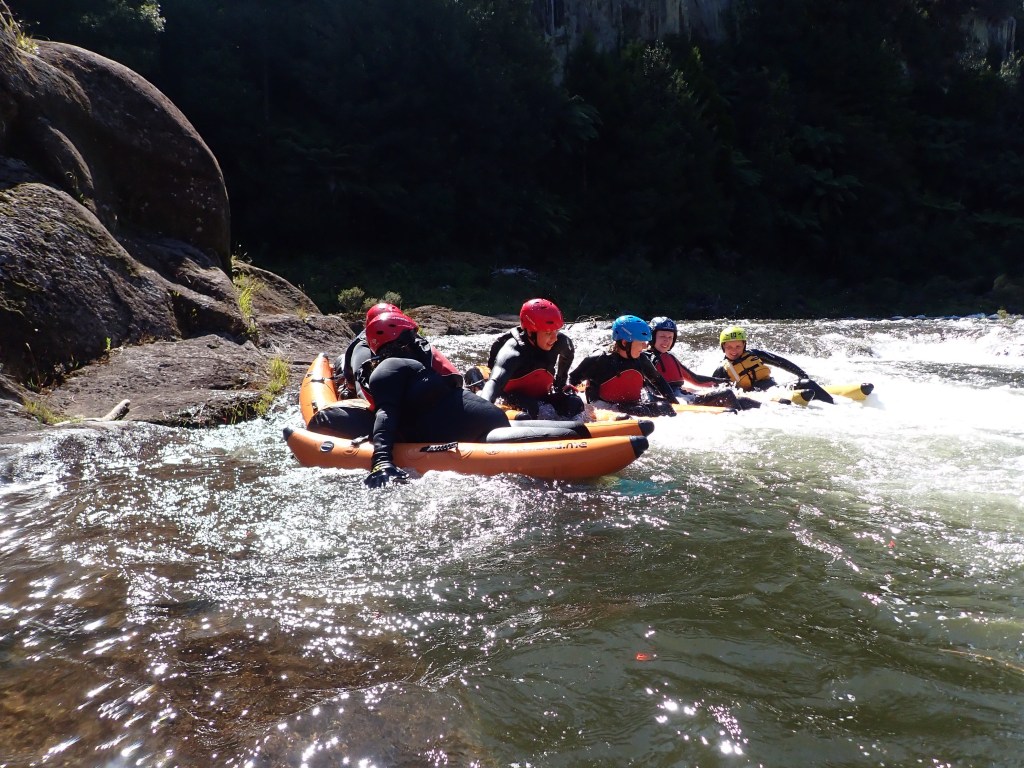 The floodgates opened around 10:30 and reached us around 11. We played around a bit, learning how to use rafts and feel our way through the rushing water. To avoid tipping, we needed to lean upstream into the oncoming water. Not the most intuitive move.