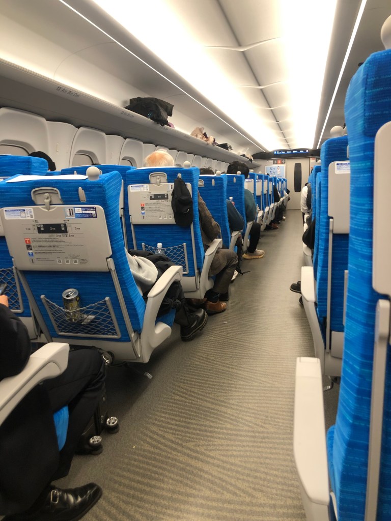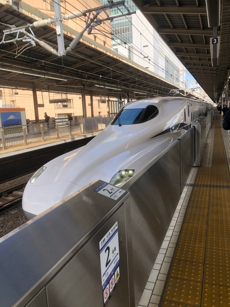 It was quiet and comfortable. There was power to charge devices. There wasn’t a lot of scenery — often we were behind fences or factories. We did get views of two faces of Mount Fuji. It’s so much taller than the surrounding mountains!